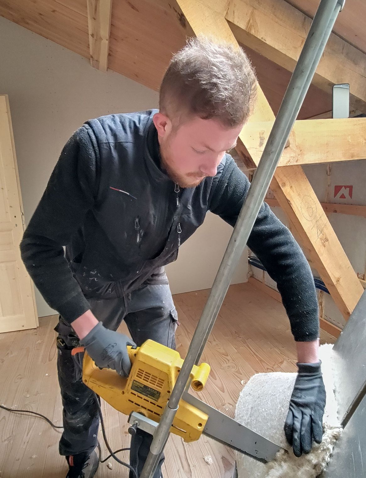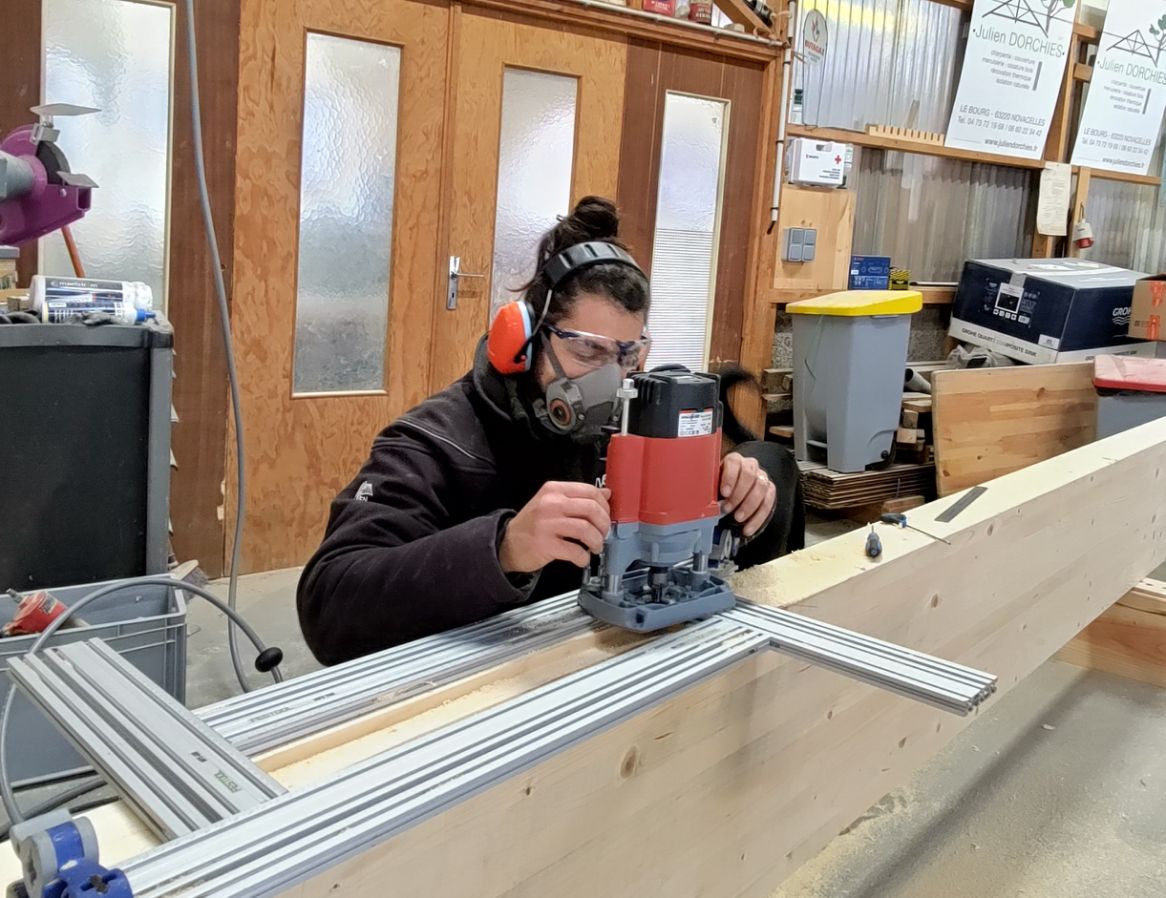 En reconversion professionnelle, il s'est découvert une véritable passion pour le trait de charpente. Son hobby? Réaliser des modélisation des futures charpentes qui sortiront de l'atelier...