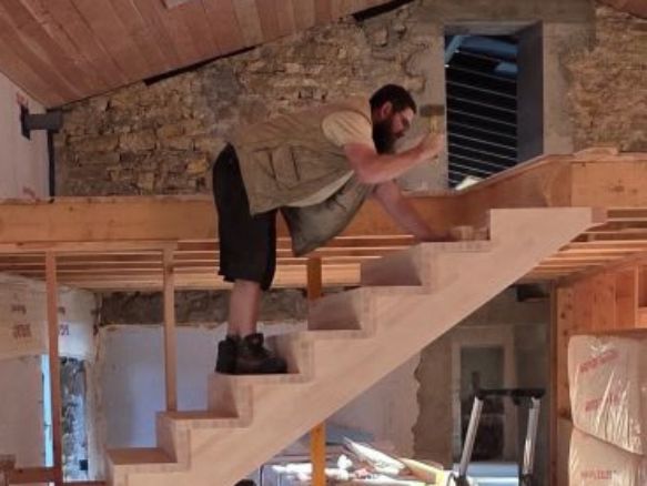 Après avoir pris ses marques dans plusieurs belles entreprises de la région lyonnaise, il a opéré un retour au sources radical avec femme, enfants et moutons! C'est un menuisier, un vrai, un de ceux qui savent encore parler de mouton, gueule de loup, stylobate, ravancement de moulure, et il ne fait pas qu'en parler, il le fait! Pour le plus grand bonheur de nos clients en recherche d'authenticité.
