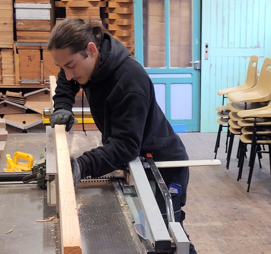 Ce ancien régisseur technicien lumières a quitté le monde du spectacle vivant pour celui, tout aussi vivant, du bois: il vient de rejoindre l'équipe dans le cadre d'un CAP charpente au Greta d'Ambert.