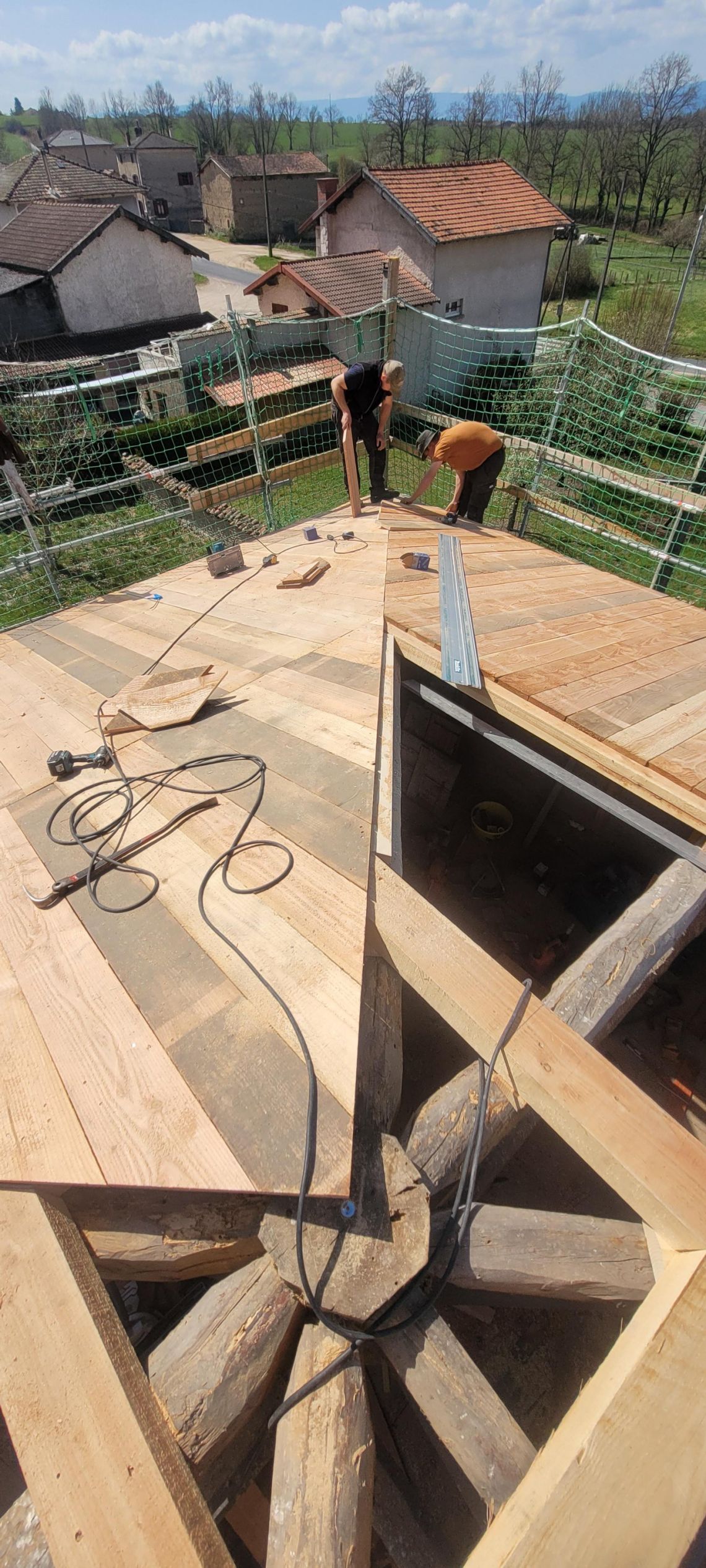 Les anciens nous ont prouvé qu'on pouvait construire durablement en utilisant des matériaux et techniques simples, sans produits chimiques ou de provenances inutilement lointaines. C'est dans cet esprit que nous travaillons. Nos toitures respectent les proportions et pentes d'origine, sont constituées d'essences locales, et les couvertures sont principalement en terre cuite canal. Lors des réfections de charpentes, nous attachons un soin particulier à effectuer les reprises de maçonnerie dans la même pierre que le mur, et au moyen d'un enduit à la chaux.